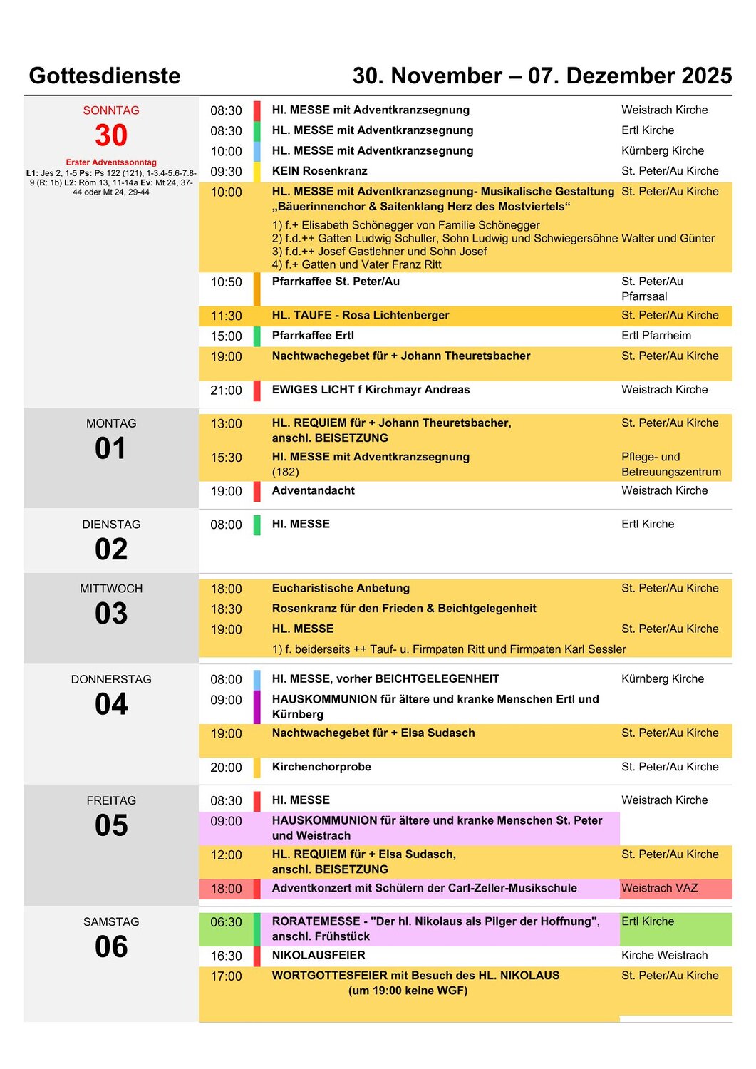 Am heurigen Elisabethsonntag wurde die Sonntagsmesse durch den Seniorenchor St. Peter/Au unter der Leitung von Maria Hörtler klanglich wunderschön gestaltet.