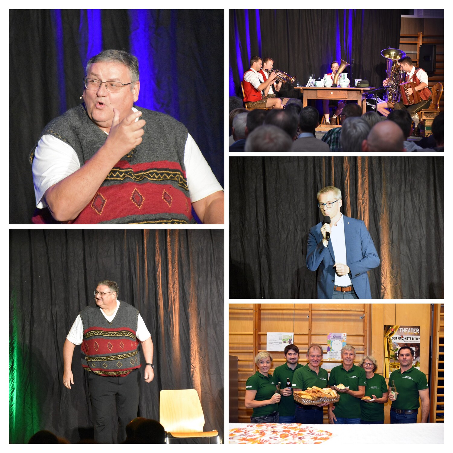 Walter präsentierte einige heitere Stücke aus seinen Kabarettprogrammen und bekam dafür viel Applaus und Lachen vom Publikum. Dazwischen spielte die Stockerkogl-Tanzl-Musi weitere schwungvolle Stücke. Wir hörten auch noch eine Zugabe von Walter Kammerhofer.