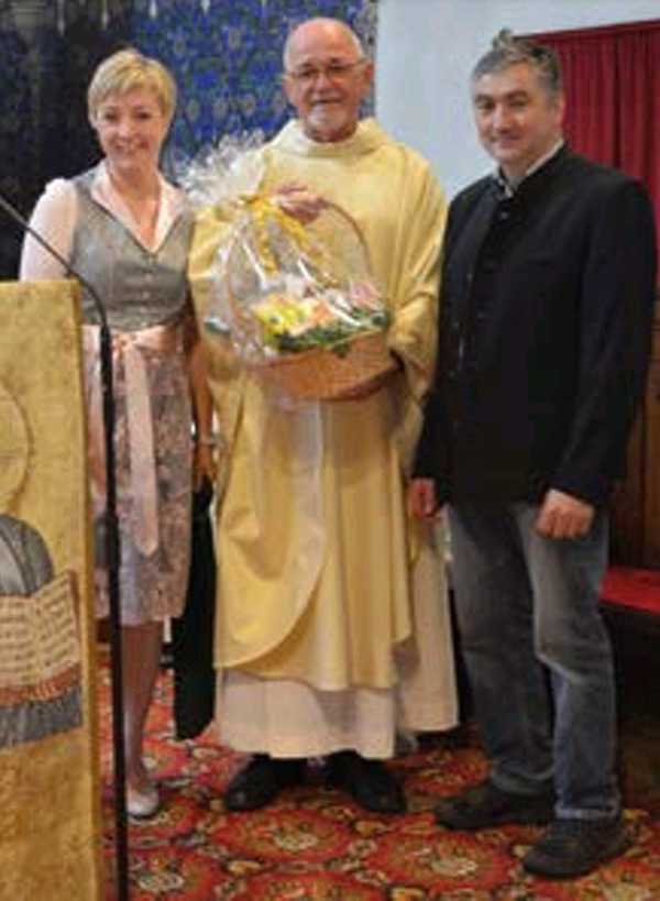 Deshalb überreichte ihm der Pfarrverband, mit je einem Vertreter jeder einzelnen Pfarre, am Donnerstag den 25. Juli, nach der Hl. Messe in Ertl ein Geschenk und einen Topfenstrudel.