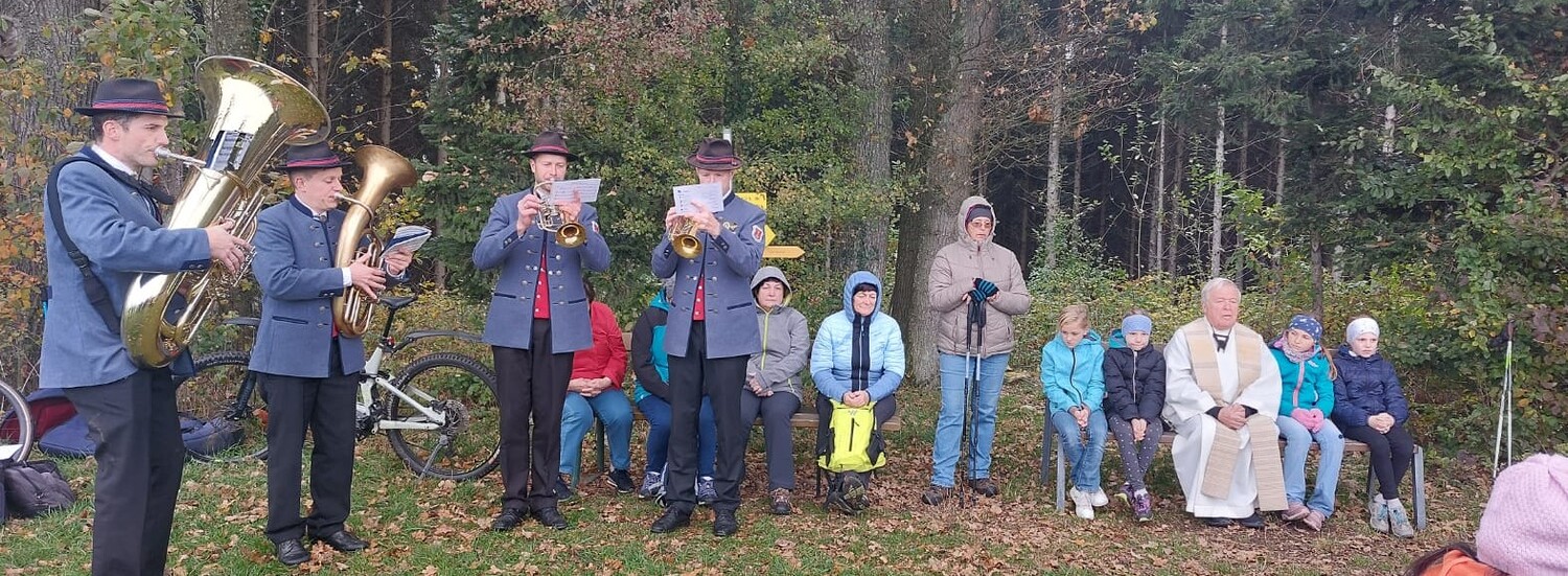 Der Obmann des Alpenvereines, Hermann Sonnleitner, begrüßte Monsignore Zarl und viele Wanderer aus den umliegenden Pfarren und lädt alle ein, die Hl. Messe mitzufeiern. Musikalisch umrahmt von der Stockerkogl-Tanzlmusi, feierte die große Schar Wanderer mit Monsignore Zarl den Gottesdienst bei kühler, aber schöner herbstlicher Stimmung.