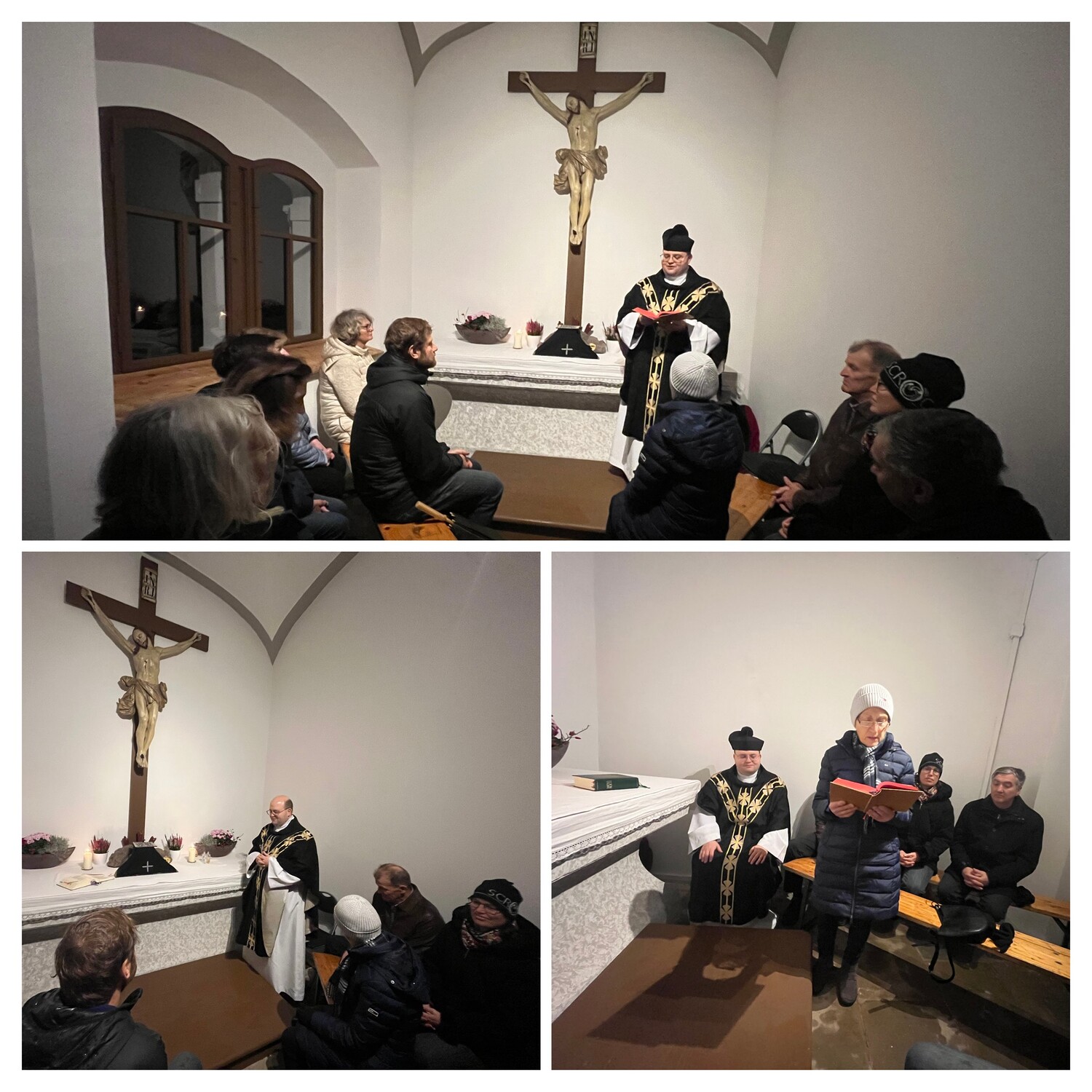 Bei einigen Kapellen und Kreuzen am gesamten Weg bis nach Maria Neustift, wurde innegehalten für eine Andacht, ein Gebet oder Lied. Jeder konnte allgemeine oder persönliche Anliegen teilen mit allen, oder in Stille zu Gott bringen. Während des Gehens wurden auch einige Rosenkränze gebetet. Alle Wallfahrer beteten für die Pfarrgemeinde, den Pfarrverband und persönliche Anliegen.
