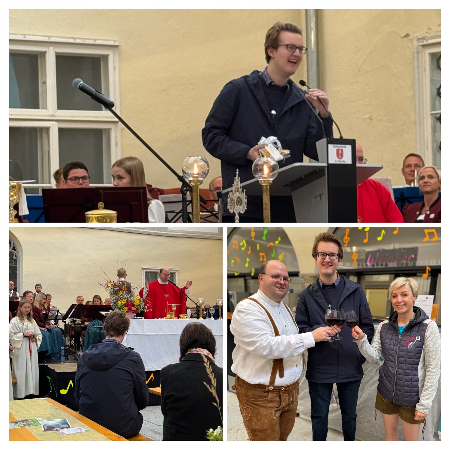 Seit 1. September 2025 ist Mag. Matthias Löpker als Pastoralassistent zur Unterstützung in bestimmten seelsorglichen Aufgaben im Pfarrverband St. Petrus im Mostviertel tätig. Zum Abschluss der Festmesse der Blasmusik, im Schloss in St. Peter am 14. September, stellte sich unser Pastoralassistent vor. In einer kurzen Ausführung sprach Mag. Matthias Löpker über seine jetzigen und zukünftigen Aufgaben, Zuständigkeiten und Visionen im Pfarrverband und im Dechanat. Vor allem die Arbeit mit Jugendlichen ist ihm ein großes Anliegen. Dann begrüßte unsere stellvertretende Vorsitzende des Pfarrgemeinderates, Martina Begicevic, mit diesen herzlichen Worten unseren Pastoralassistenten und überreichte ihm ein Präsent:
