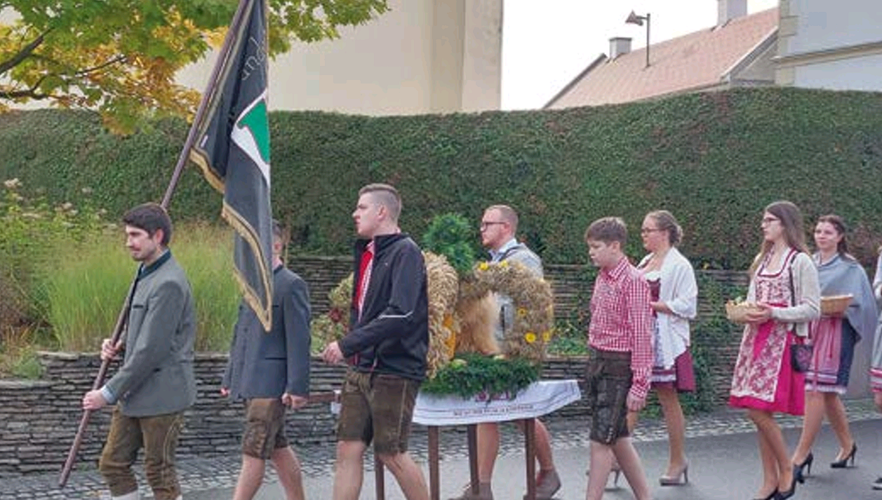 Mit festlichen Klängen der Blasmusik wurde die wunderschön gestaltete Erntekrone von der Landjugend und viele Erntegaben, wie Gemüse, Kürbisse, Äpfel und vieles mehr, von den Kindern zum Pfarrhof getragen. Pfarrmoderator Mag. Alexander Fischer segnete alle Erntegaben und die anwesenden Gläubigen. Große Dankesworte sprach er an Gottes Schöpfung für all diese Gaben. Ebenso dankte er allen, die für die Organisation und zum Gelingen des Erntedankfestes beigetragen haben. Dann gingen alle im Festzug zur Kirche, beginnend mit Kreuz und Musik. Nachfolgend die Landjugend mit der Erntekrone, die große Kinder Gottesdienst Gruppe mit den Erntegaben, der Bauernbund, die Goldhaubengruppe, die Gemeinde Vertreter, viele Vereine und Organisationen, eine große Ministrant:innen Schar und unser Pfarrmoderator, sowie alle Gläubigen zogen in festlicher Stimmung zur Erntedankfestmesse in die Kirche ein. Die Hl. Messe gestaltete die Landjugend, der Landjugend Chor und die Kinder Gottesdienst Gruppe sehr stimmig.