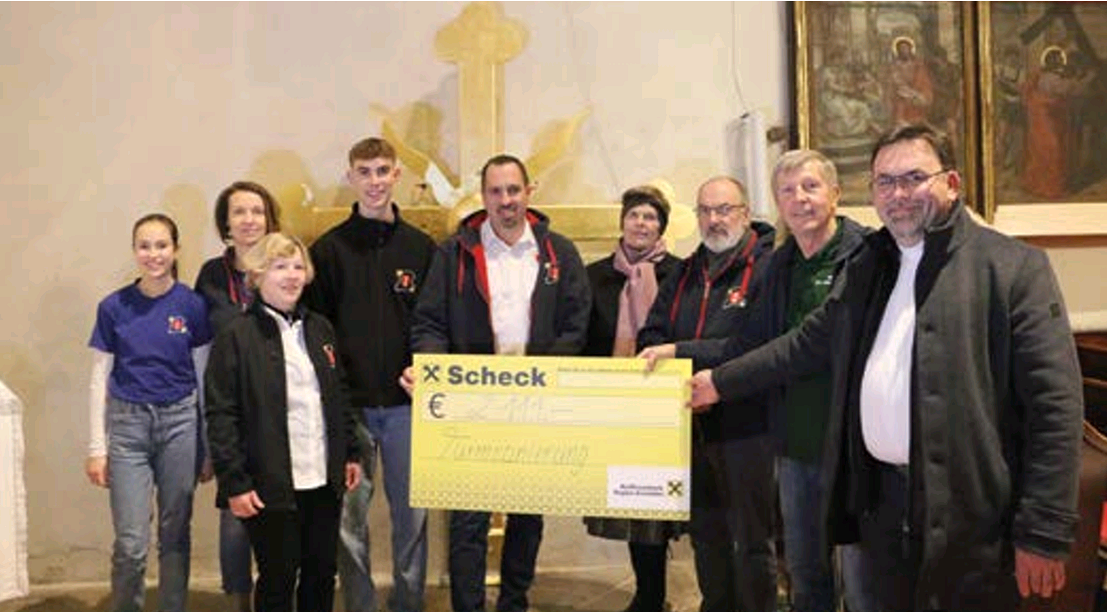 Dank der großzügigen Spenden konnte sich der Pfarrgemeinderat über einen Beitrag von € 2.055,– freuen, welcher zur Gänze der Turmrenovierung zu Gute kommt.