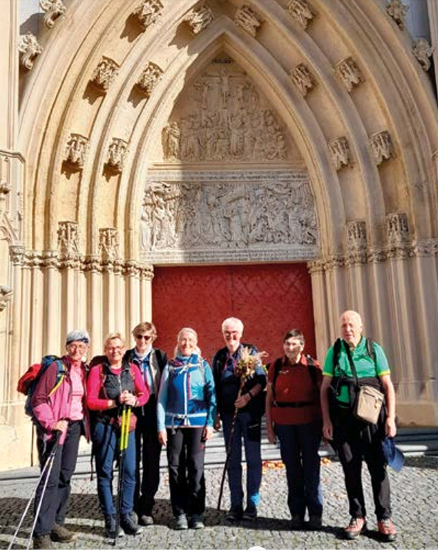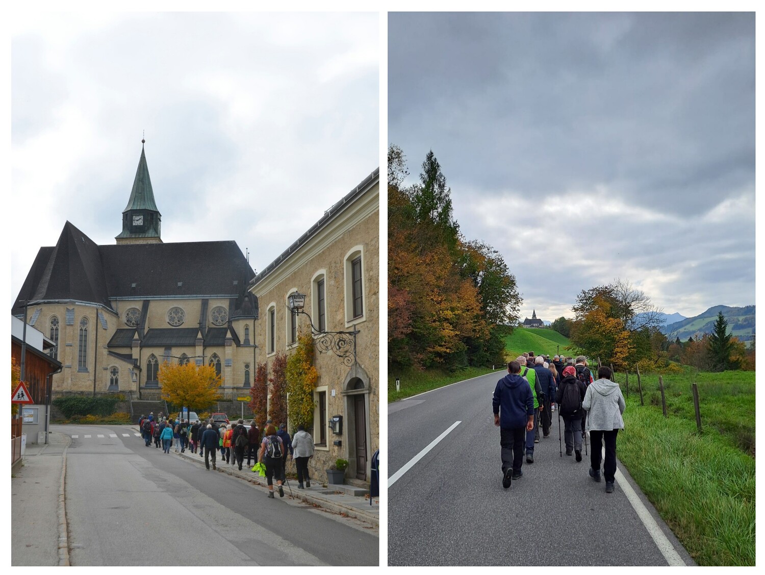 Ausgerüstet mit fröhlicher Zuversicht und geschmücktem Pilgerstab war Anfang Oktober eine Gruppe von sieben Personen aus St. Peter und Umgebung vier Tage lang wieder unterwegs auf traditionellen Wallfahrtswegen von St. Peter nach Mariazell. Die einzelnen Bitten des VATER UNSER wurden betrachtet, meditiert und über ihre Bedeutung für das konkrete alltägliche Leben nachgedacht. Bei wunderbarem Herbstwetter erlebten die Wallfahrer:nnen neben dem „Beten mit den Füßen“ auch beeindruckende Begegnungen mit Menschen und der Natur. Dankbar erreichten sie ihr Ziel und kehrten gestärkt und ermutigt in ihren Alltag zurück.