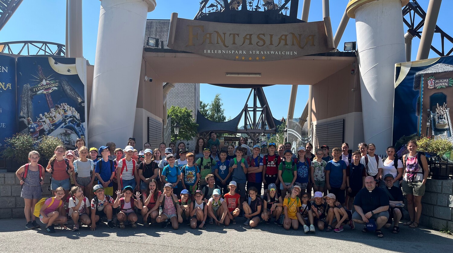 Ein jährliches Highligth für unsere Ministranten und Ministrantinnen ist der Ausflug in den Sommerferien. Heuer das erste Mal gemeinsam, mit allen Ministrantinnen und Ministranten der vier Pfarren des Pfarrverbandes. Das Ziel war der FANTASIANA Erlebnispark Straßwalchen. Pfarrmoderator Mag. Alexander Fischer, Kaplan Mag. Simon Eiginger als Hauptorganisator, die Ministrantenbetreuer:innen und weitere Begleitpersonen begleiteten die Ministrantinnen und Ministranten. Strahlender Sonnenschein sorgte für beste Stimmung in der großen Gruppe mit rund 70 Personen.