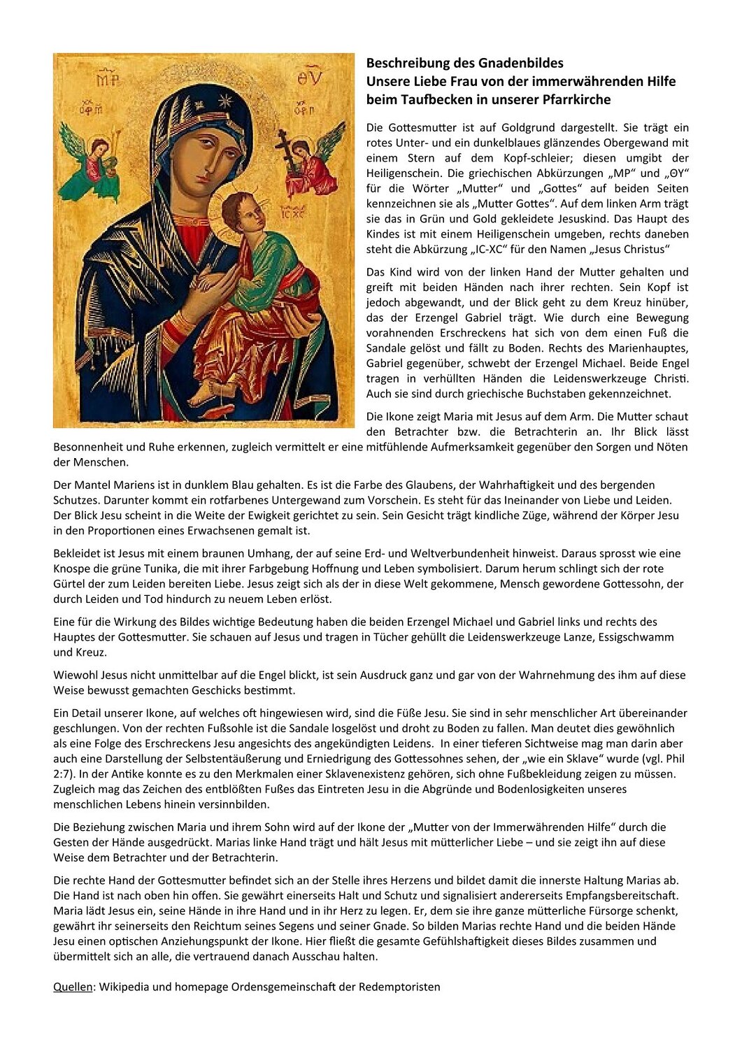 Die Mutter Gottes Ikone in unserer Pfarrkirche beim Taufbecken